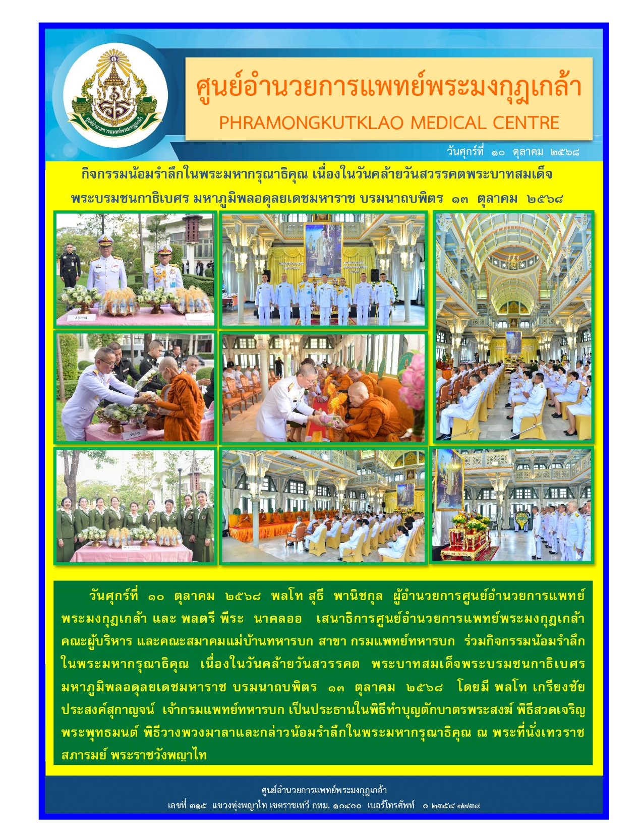กิจกรรมน้อมรำลึกในพระมหากรุณาธิคุณ พระบาทสมเด็จพระบรมชนกาธิเบศรฯ เนื่องในวันคล้ายวันสวรรคต 13 ตุลาคม 2568