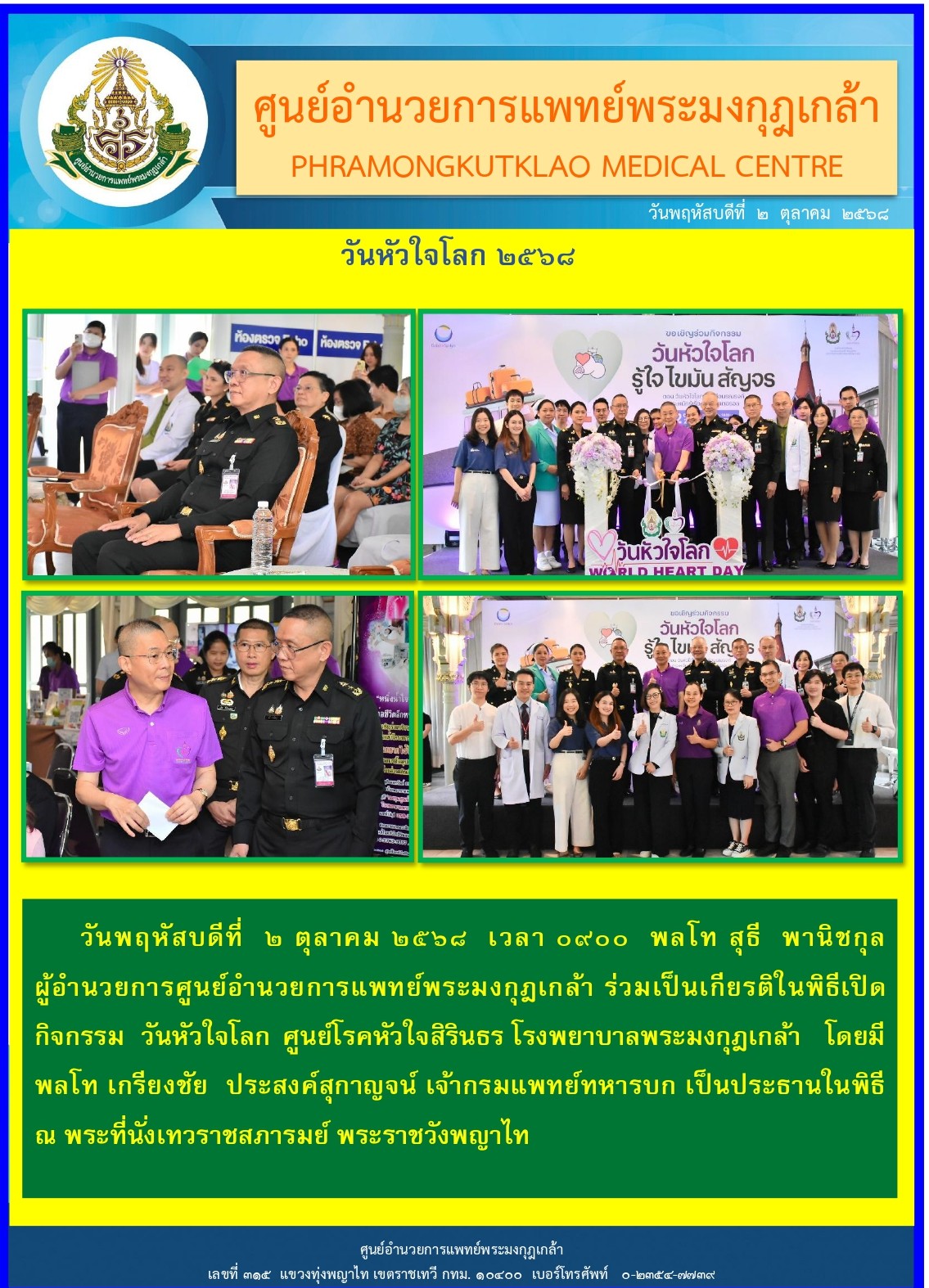 พิธีรับ-ส่งหน้าที่ ผู้อำนวยการศูนย์อำนวยการแพทย์พระมงกุฎเกล้า เมื่อวันที่ 30 ก.ย.68